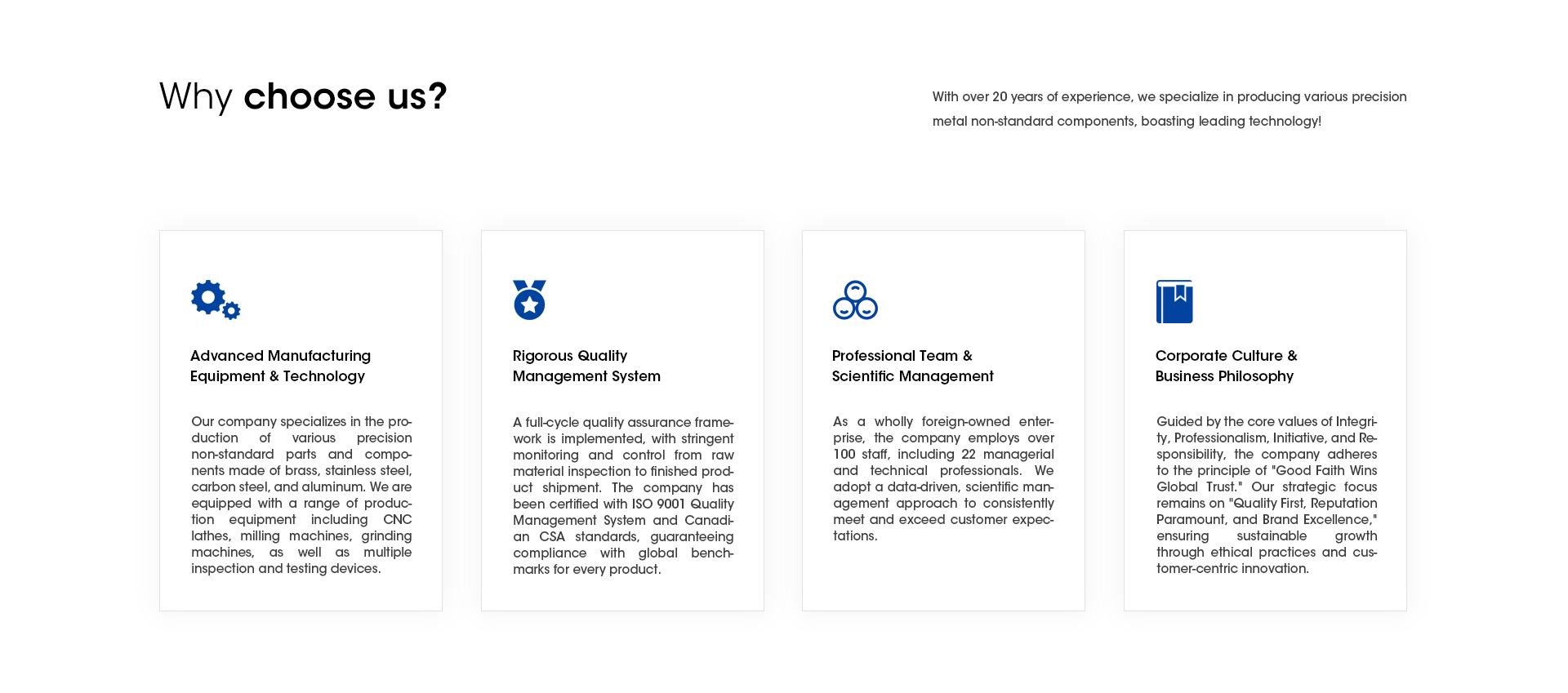 Apsu Valve & Metal Works (Shanghai) Co., Ltd. is a wholly foreign-owned enterprise fully invested by Hong Kong Jutian Development Co., Ltd. in 2002. We specialize in the production of various precision non-standard parts and components made of brass, stainless steel, carbon steel, and aluminum. With over 100 employees, including 22 management and professional technicians, we occupy an area of 4,000 square meters and have a construction area of 2,000 square meters, with an annual output value reaching RMB 30 million. Equipped with CNC lathes, milling machines, grinding machines, and various testing equipment, we ensure efficient and precise production.
